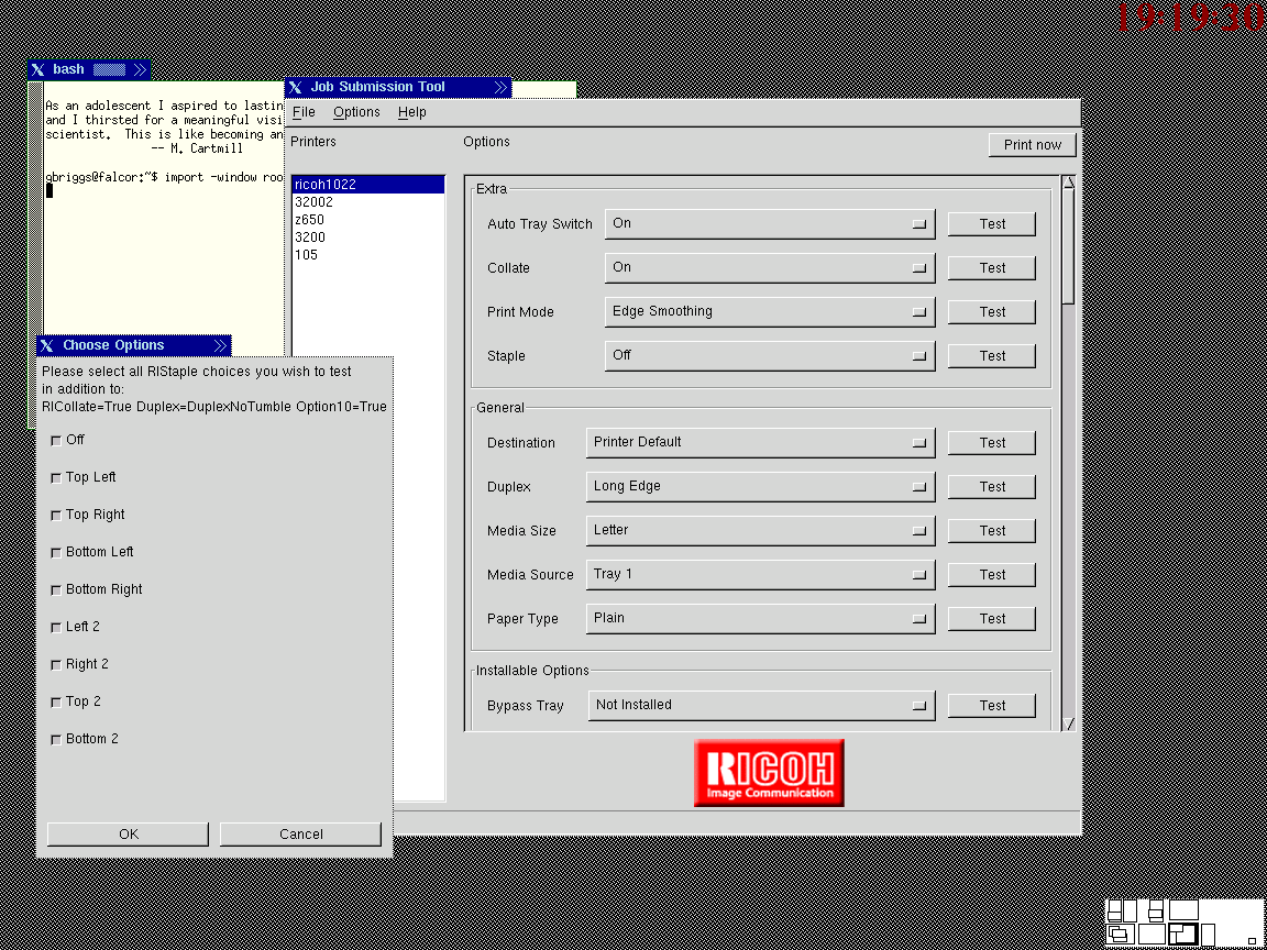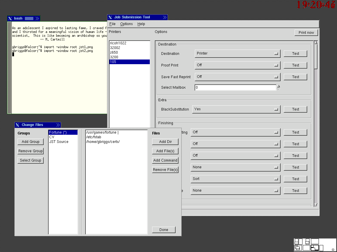 Codehost's Job Submission Tool is a primarily QA tool designed to submit many hundreds [possibly] of jobs to a printer, with varying options and cover pages to reflect the specific job. This puts both the desktop's printing system and the printer under strain.