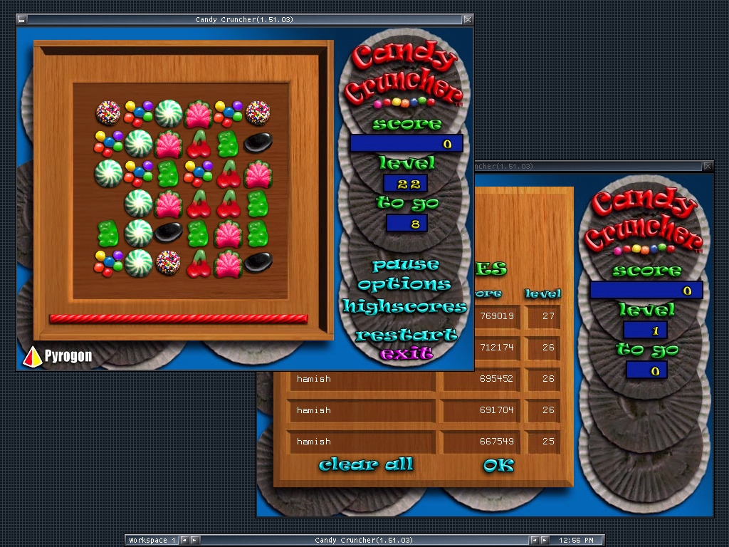 Candy Cruncher stands as an interesting piece of Linux gaming convergence, with it pulling on almost all of the major threads that defined the industry up to that point. The lead developer of the game was Brian Hook, who is best known for being one of the key architects behind the Glide API for 3dfx, but he would also find success working on both Quake II and Quake III Arena at id Software; founding Pyrogon was his attempt at a slower pace after being at the top of his field for so very long.