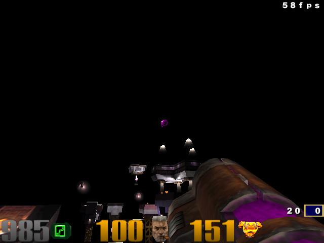 To test it, go to Q3DM19, take the railgun, reach the most far platfom (the one