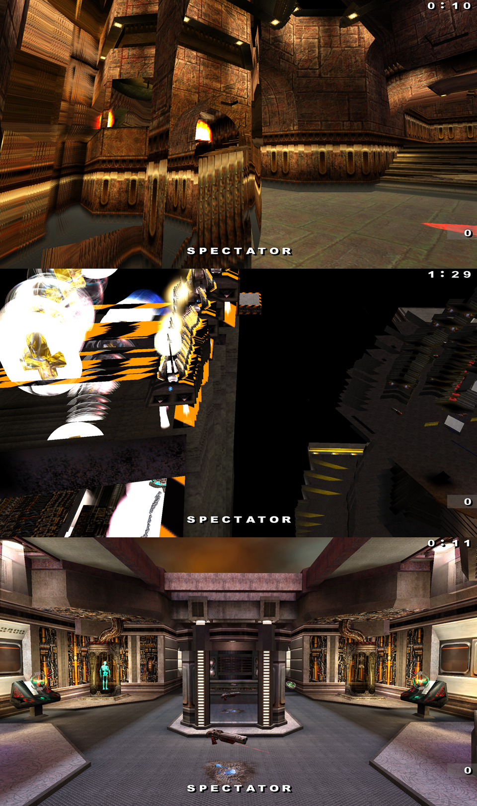 The attached screenshots shows the ceiling mirror in q3dm8 and the floor mirror