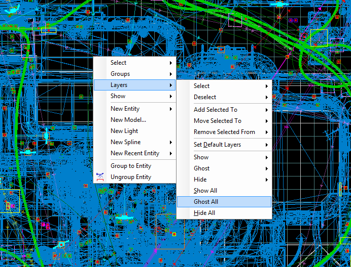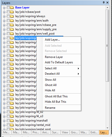 The layer window lists all the layers in the map. When the folders are opened, they list all the entities in that layer. Note: It is possible for an entity to be in multiple layers.